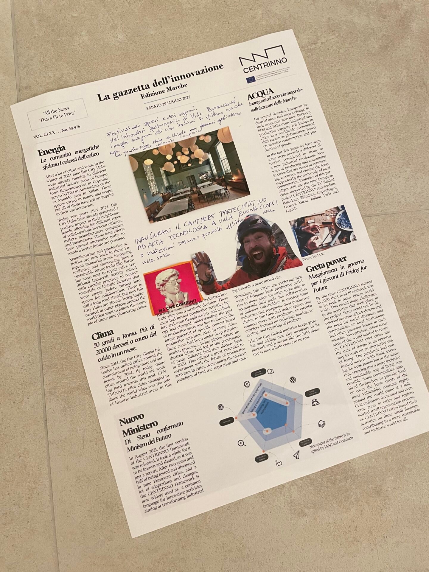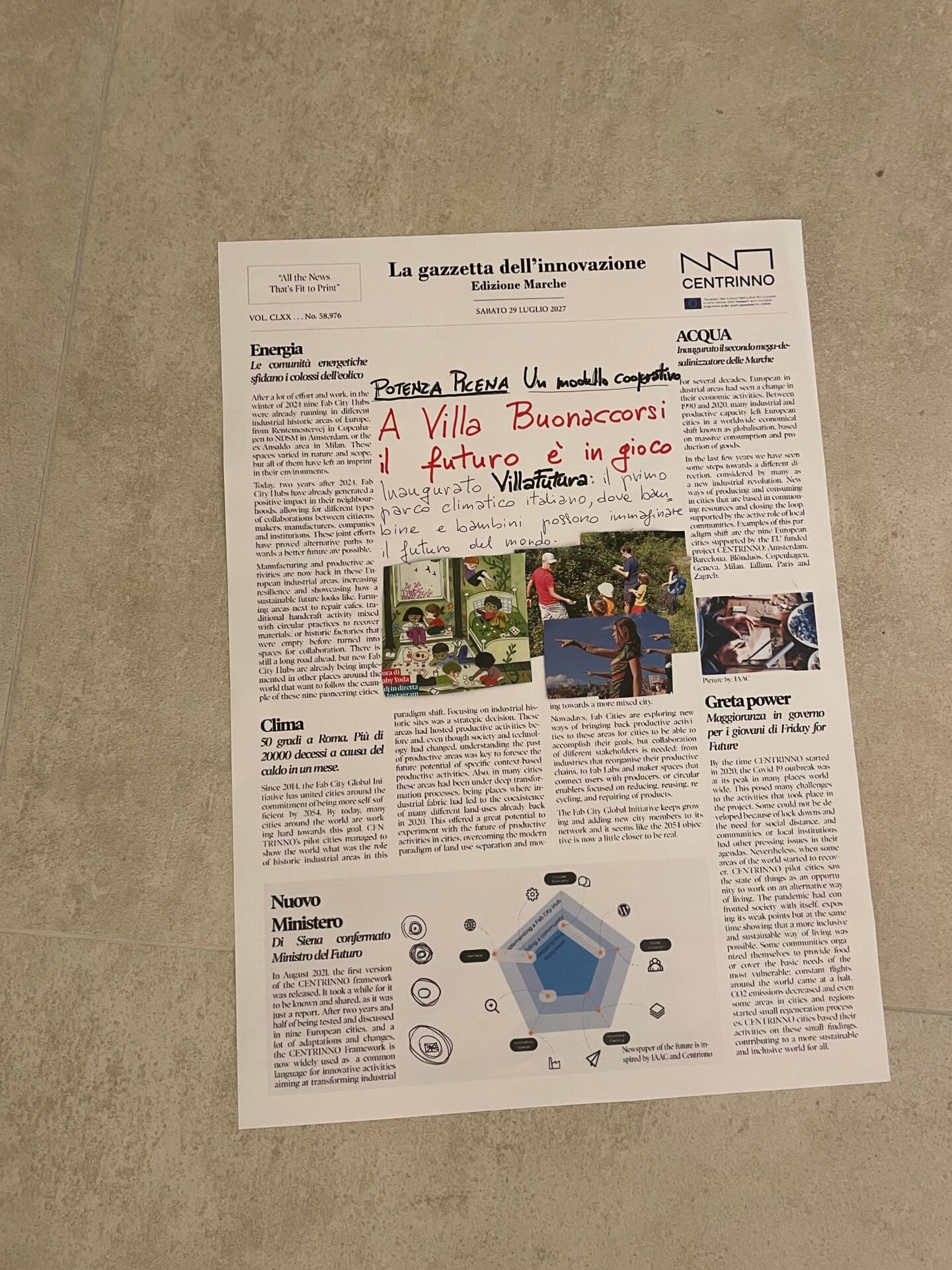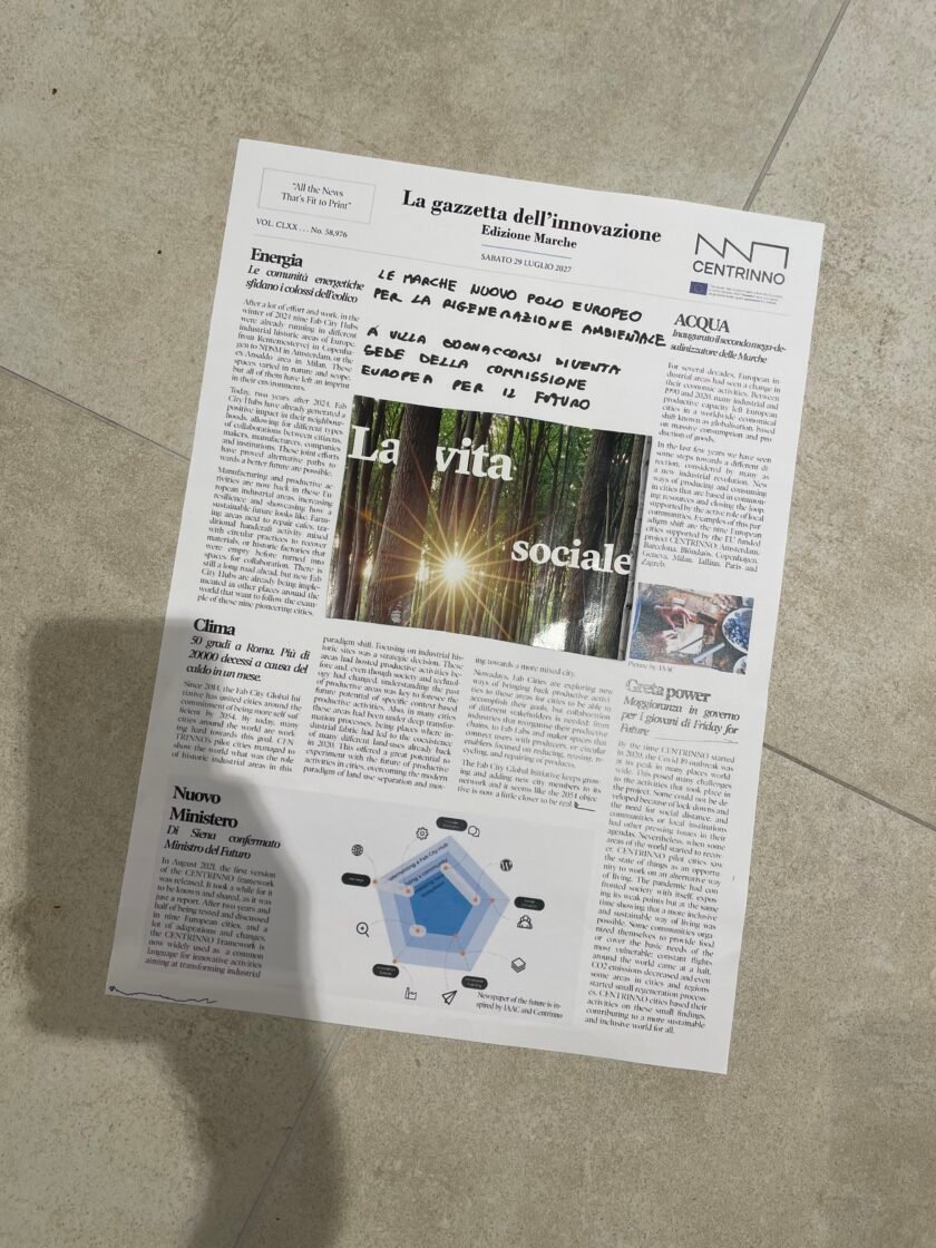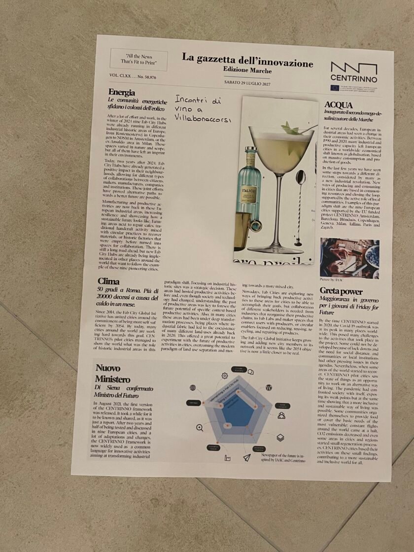 Abbiamo scritto la prima pagina della Gazzetta dell’Innovazione (che vedete qui sopra), che nel 2027 parlerà di che cosa è diventata Villa Buonaccorsi. A fine luglio, con il direttivo dell’Associazione, abbiamo fatto un Villa Summer Camp in versione mini (eravamo in 5), per fare, appunto, un lavoro introspettivo, di analisi, e dunque di proiezione sull’anno a venire.
